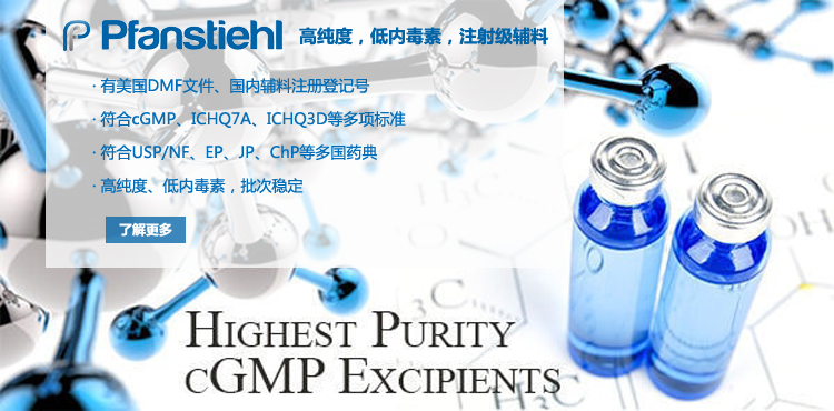 “熱烈祝賀Pfanstiehl的注射級甘氨酸Glycine(G-140)喜獲CDE登記號F20250000403, 這是Pfanstiehl產品獲得的第18個CDE登記號!”甘氨酸在醫藥輔料制劑中應用廣泛,, 可作為緩沖劑,增溶劑,穩定劑等,具有諸多優勢。Pfanstiehl秉承一貫高品質理念,為滿足全球生物制藥行業對于高品質甘氨酸的需求,隆重推出的注射級甘氨酸Glycine (G-140), 具有超高純度,超低內毒素,超低金屬殘留的特點,單獨檢測29種金屬離子,并且新增DNA,RNA,DNA酶,RNA酶和脂肪酶,亞硝酸鹽等多項質量指標的檢測,符合多國藥典規定(USP, EP, BP, JPE, ChP),可用于生物治療性藥物和疫苗的生產。產品信息:· 產品名稱:Glycine, High Purity, Low Endotoxin, Low Metals, USP, EP, BP, JPE, ChP (G-140)· 中文名稱:甘氨酸· 分子式:C2H5NO2· 分子量:75.07 g / mol· CAS號:56-40-6· 產品貨號:G-140產品特點: · 超高純度,超低內毒素,超低微生物含量,超低金屬雜質殘留· 質量指標新增DNA,RNA,DNA酶,RNA酶,脂肪酶和亞硝酸鹽檢測· 符合多國藥典:USP, EP, BP, JPE, ChP· 符合ICH Q3D標準· 符合GMP標準· 已獲DMF和CDE登記號 產品應用:· 緩沖劑· 穩定劑· 增溶劑如果您對Pfanstiehl注射級別Glycine G-140感興趣,歡迎聯系Pfanstiehl 中國區代理商北京西美杰科技有限公司獲得如下詳細的產品概況說明文件和測試樣品。Pfanstiehl Inc.最新產品系列如下,歡迎聯系北京西美杰科技有限公司獲取100g裝免費樣品。北京西美杰科技有限公司為Pfanstiehl中國代理,為客戶提供完善的技術支持與售后服務。歡迎撥打西美杰客服電話400-050-4006或者登陸網站www_xmjsci_com.visaokok.com了解更多信息。 更多>